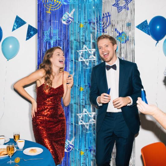 1/2/3Pcs Hanukkah Rain Curtain Background Shiny Metal Texture Three-Color Gradient Visual Effect Rain Curtain Holiday Decoration