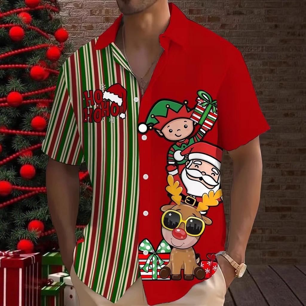 Autumn and Winter Men's Short Sleeved Shirt New Year's Christmas Pattern Digital Printed Shirt Top Men's Casual Shirt