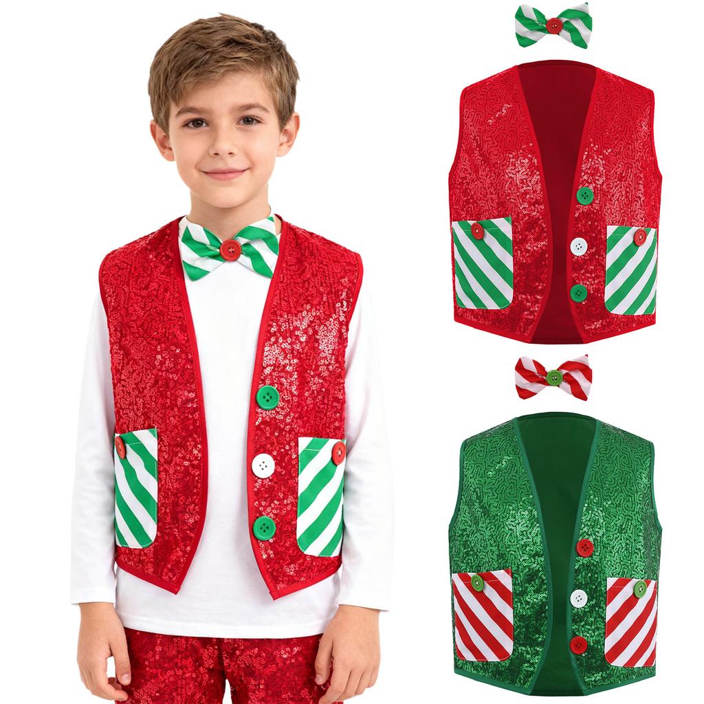 Kids Christmas Costume Sparkly Sequins Vest with Bow Tie for Latin Jazz Disco Party