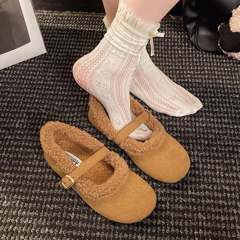 Round head flat bottom Mao Mao mouth women's shoes 2025 new autumn and winter velvet Doudou shoes casual warm women's cotton shoes