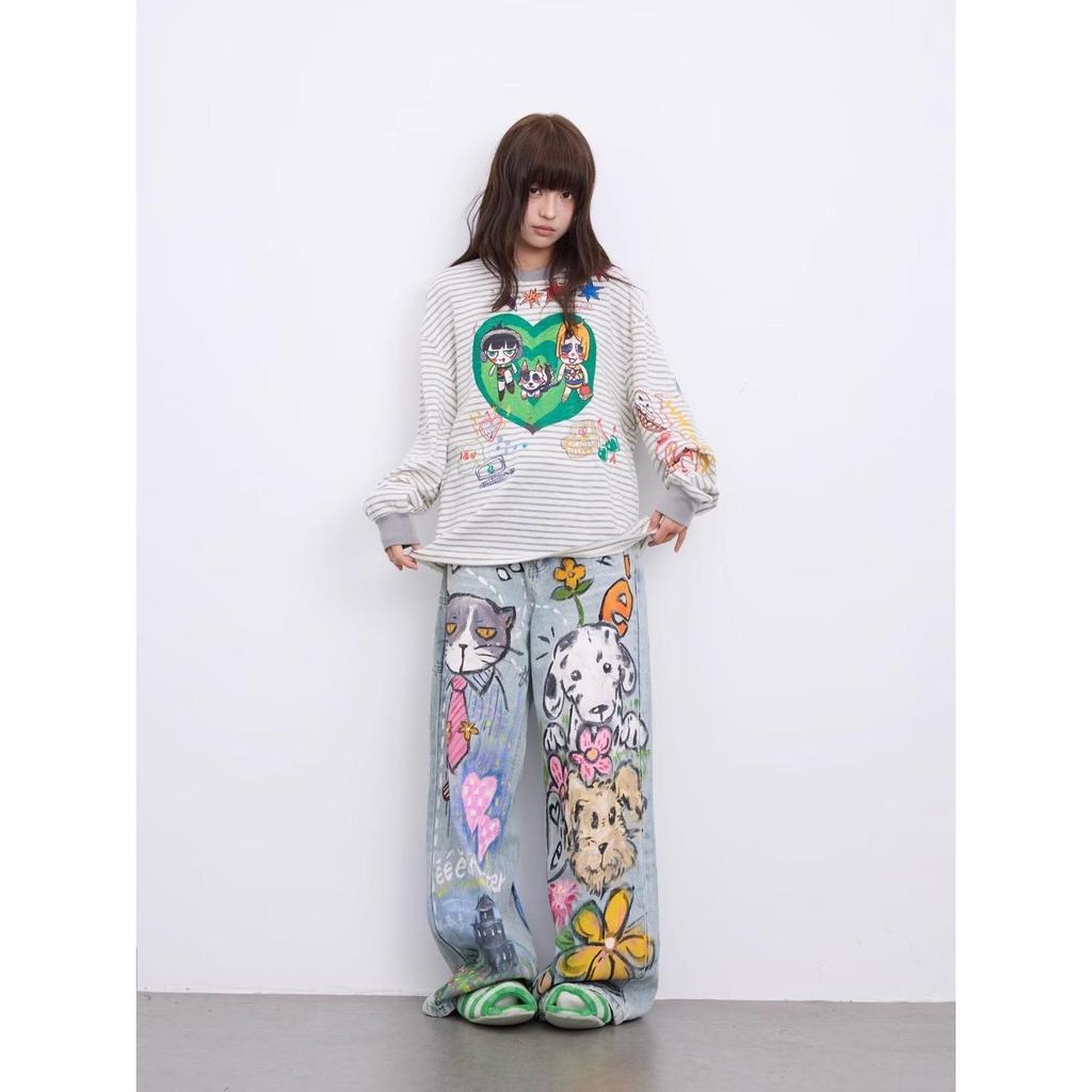 Discover the essence of casual cool with these wide-leg jeans, crafted from high-quality cotton for a comfortable, loose fit. Featuring a unique retro graffiti print, these jeans bring a bold, artistic flair to any spring wardrobe. Ideal for those looking to express individuality and style, they effortlessly combine comfort and creativity. Perfect for everyday wear, they offer both trendsetting design and timeless comfort.