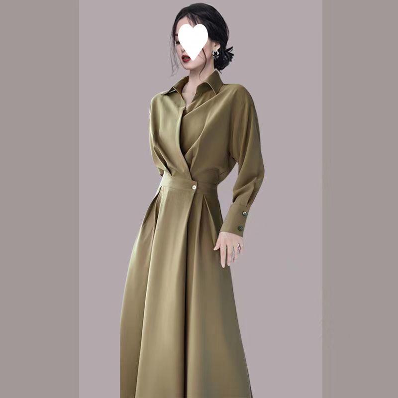 2025 Spring/Autumn Women's Acetate Satin French Shirt Dress
