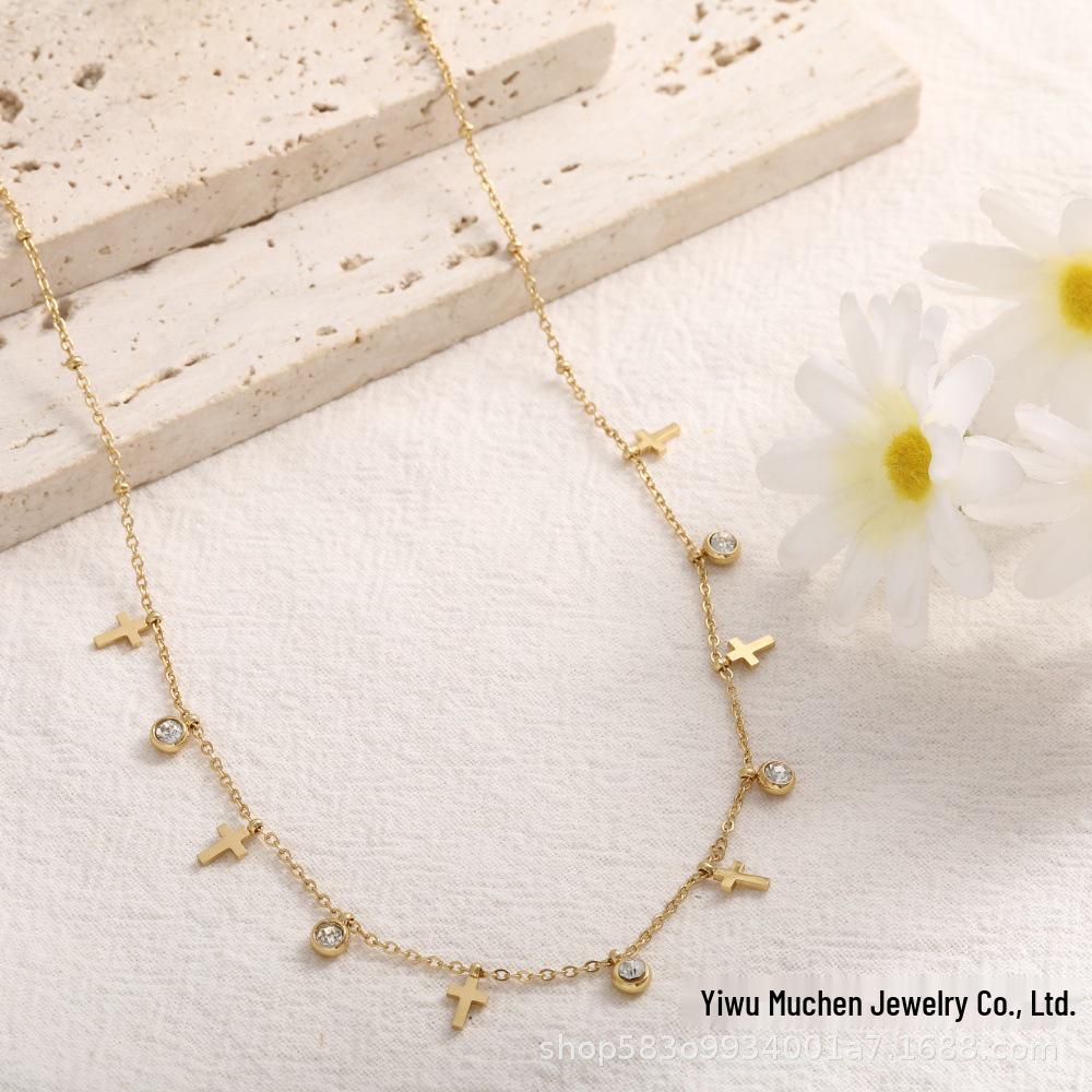 Trendy Stainless Steel Cross Zircon Clavicle Chain Necklace for Women - Versatile Fashion Accessory