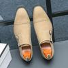 Men's Casual British Monk Strap Suede Shoes - Formal Square Toe Retro Apricot