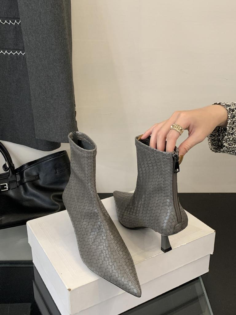 2025 new autumn and winter pointed head thin heel short boots women's suede thin shoes versatile short boots women