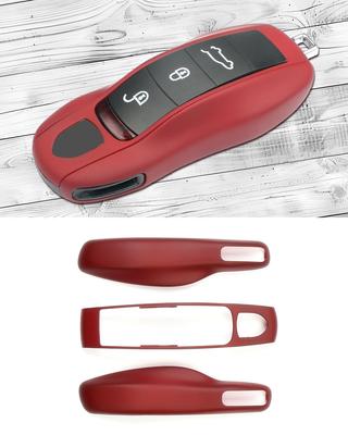 Leather Key Key Car Key Protector for Porsche 718 Case, Cover, Macan, Cayenne, Panamera, 911, Boxster, Cayman, (Red)