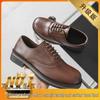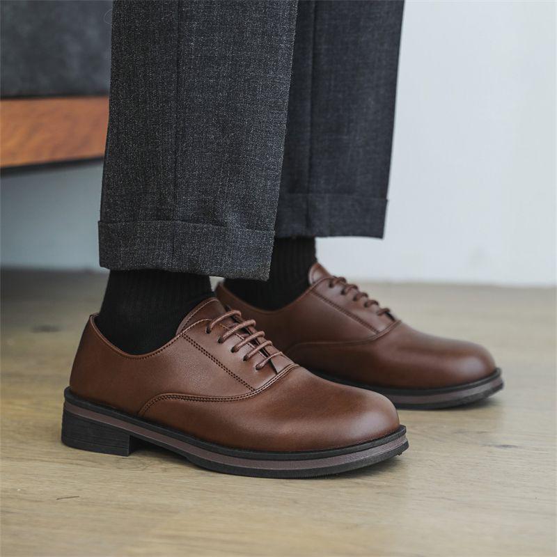 Men's Black Genuine Leather Derby Shoes - High-End, Round Toe, Formal/Casual, French/Japanese-Inspired.