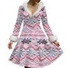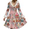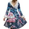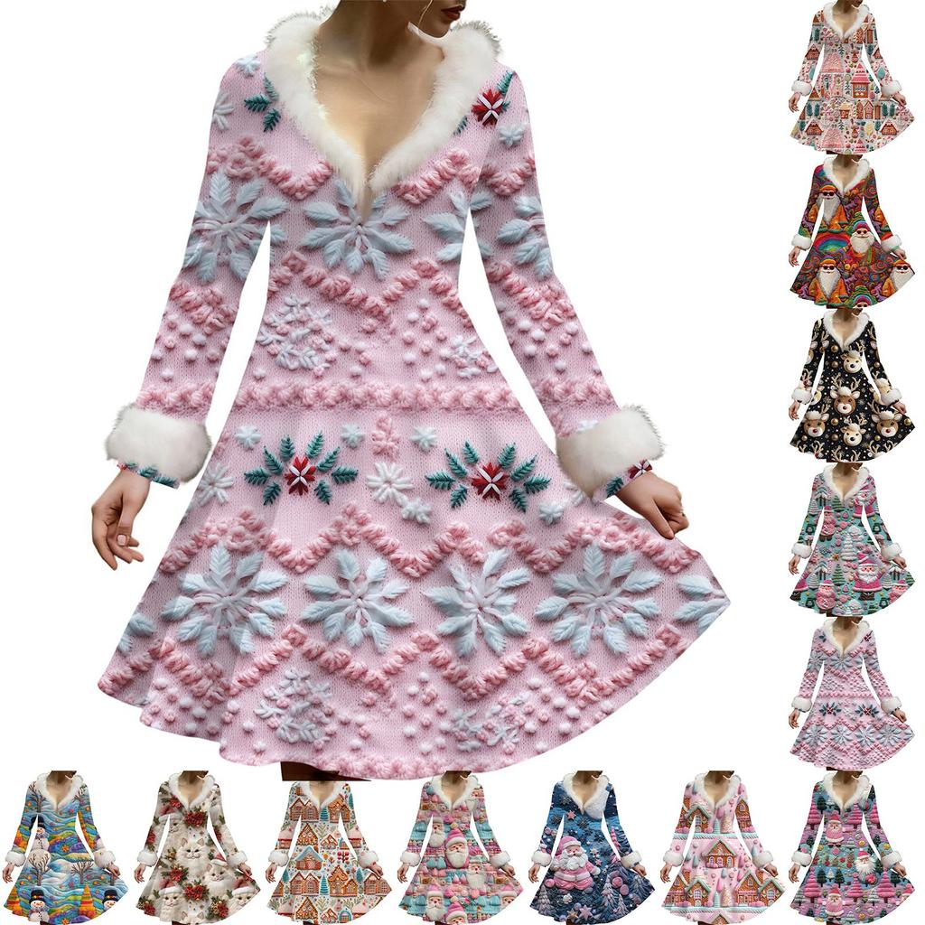 Women's Casual V-neck Christmas Print Plush Long-Sleeve Casual Dress