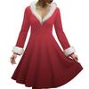 Women's Casual V-neck Christmas Print Plush Long-Sleeve Casual Dress