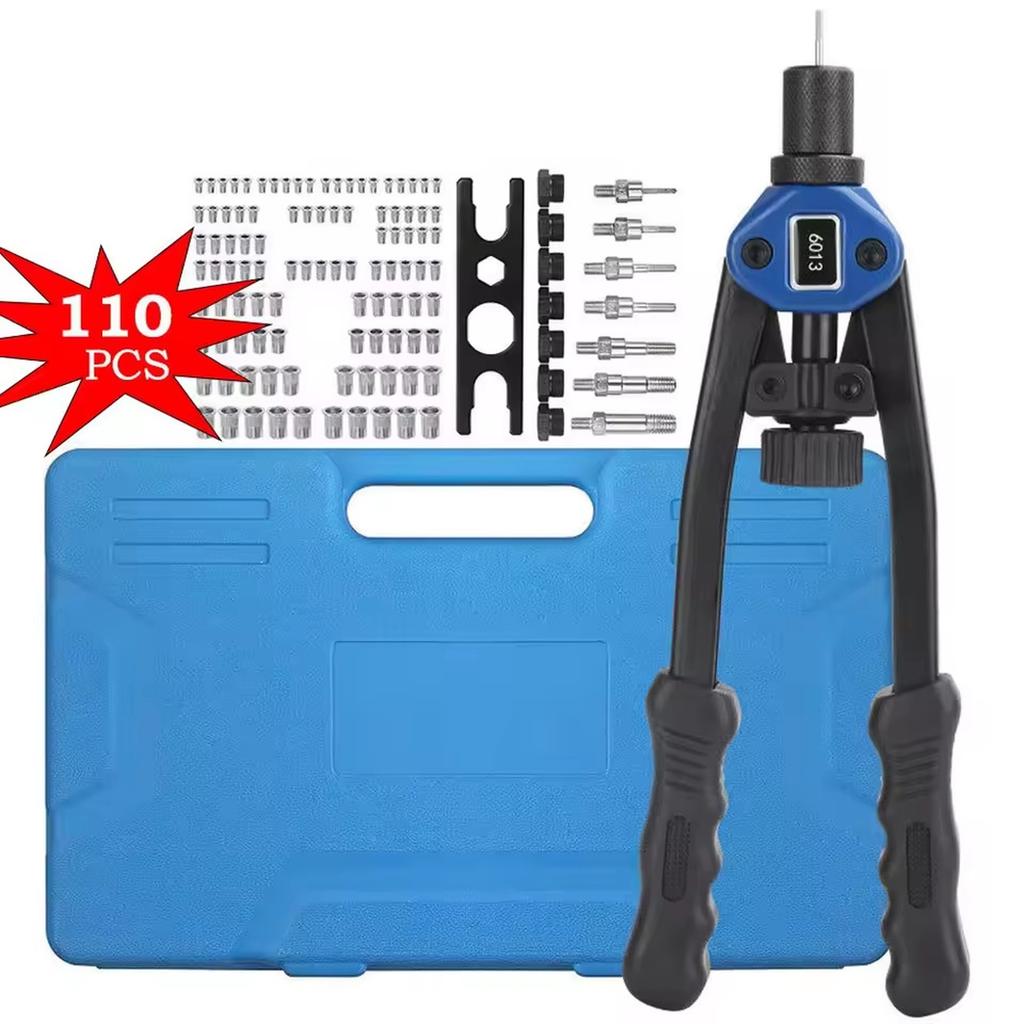 13” Hand Nut Hand er Rivnut Tool Kit with Metric Mandrels and 110Pcs from M3 to M12