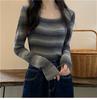 Women's Plus Size Striped Slimming Long Sleeve Knit Shirt - Autumn/Winter Collection