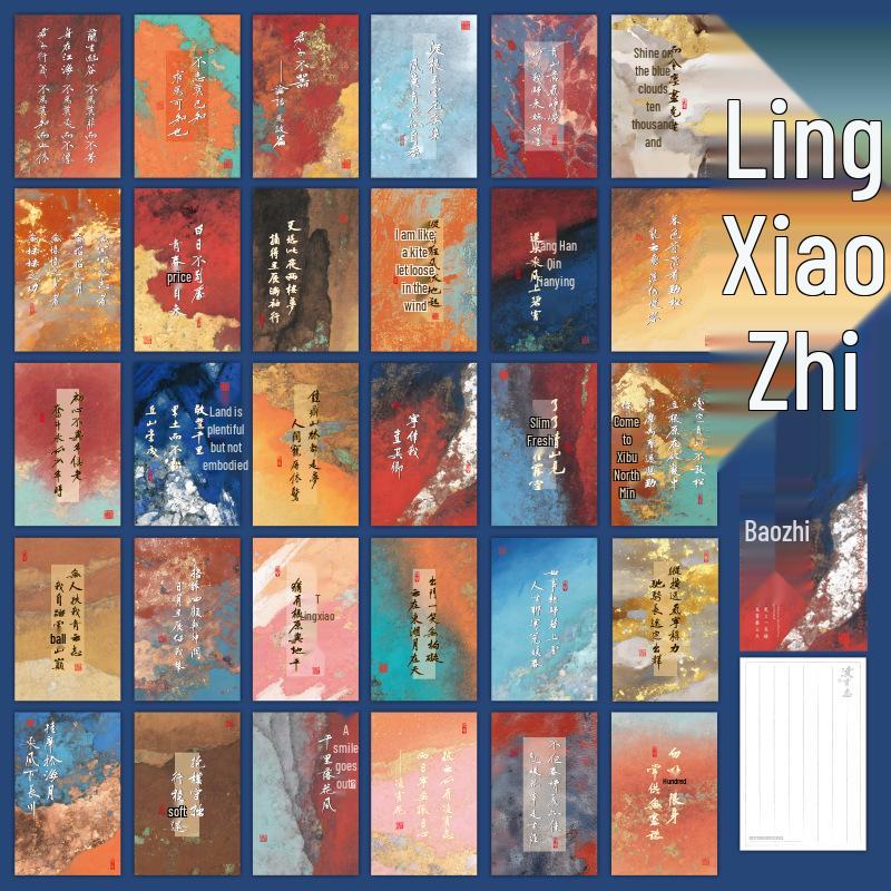Retro Lingxiao Zhi Series Hot Stamped Calligraphy Postcard Set for Blessings and Decorations