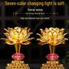 Seven-Color LED Rechargeable Buddha Offering Lamp - Lotus Design for Home and Guanyin Devotion.