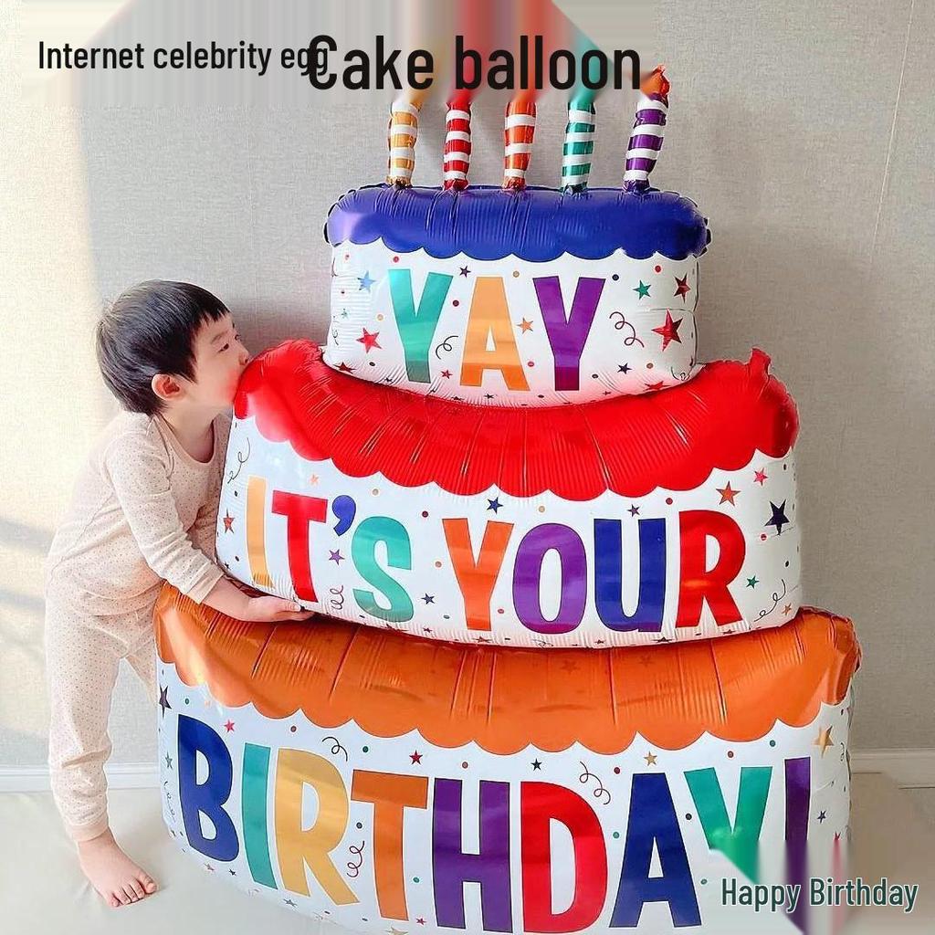 Colorful Large Birthday Cake Foil Balloon for Kids' Party Decoration and Photo Props