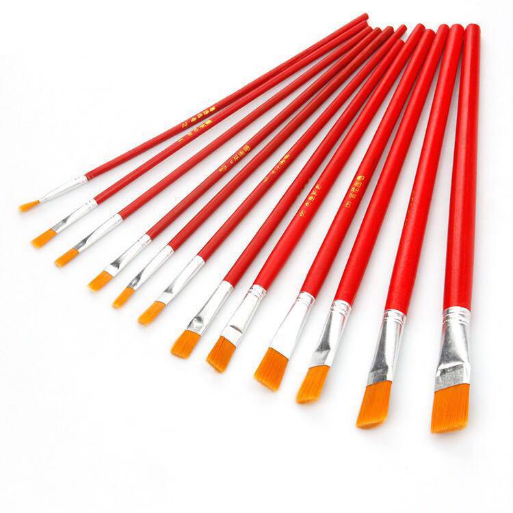 Red Handle Nylon Bristle Flat Oil Paint Brush for Gouache, Watercolor & Acrylic