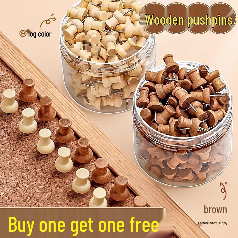 Wooden Push Pins for Felt Wall Cork Boards and Kindergarten Message Boards