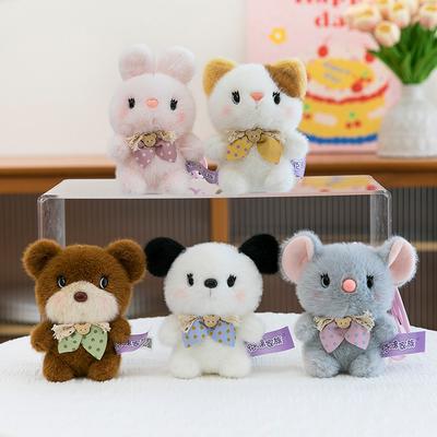 Dog Cat Rabbit Tie Animal Plush Doll Keychain Pendant For Home Office Decor