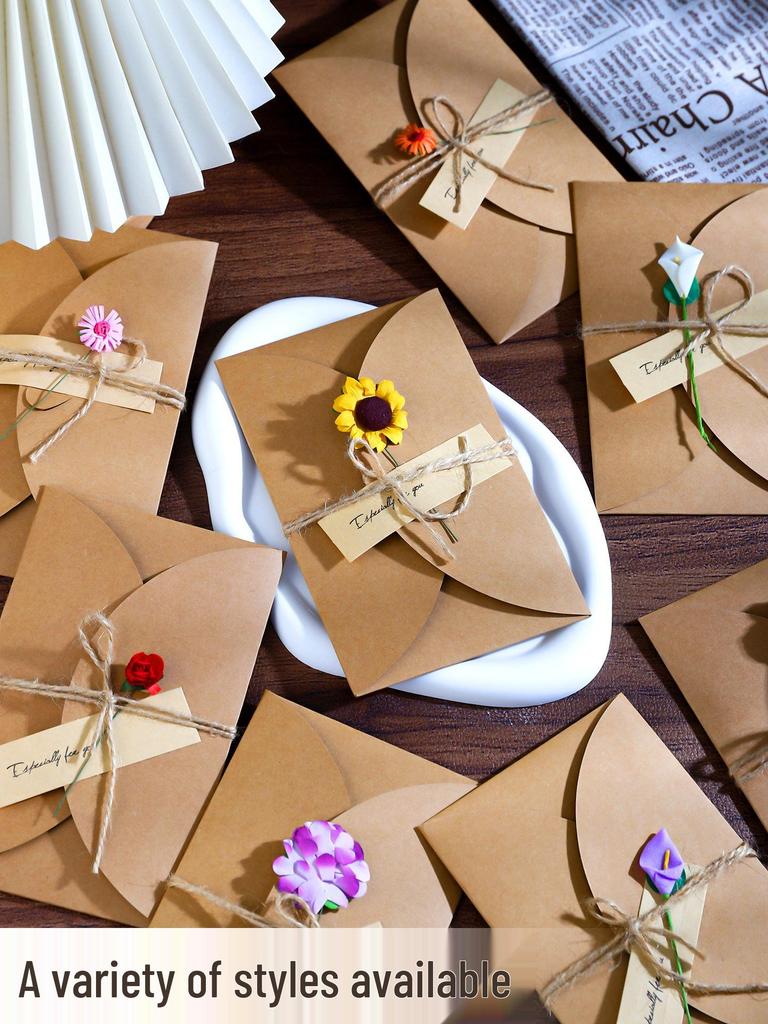 Handcrafted Retro Kraft Dried Flower Greeting Card for Birthdays & Father's Day