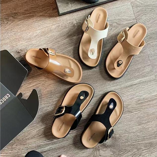 In stock! Grape mother has the same toe and wide surface adjustable square buckle flat bottom thick bottom Birkencool slippers for women's summer wear