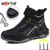 Yeni Dönen Düğmeli Erkek Botları Ezilmeye Karşı Delinmeye Karşı Güvenlik Ayakkabıları Erkek İş Botları Çelik Burunlu Ayakkabılar Güvenlik Yıkılmaz Ayakkabılar