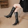 2025 autumn and winter new woven pointed thin heel high tube but knee boots fashion high heel short boots women