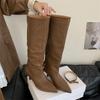 2025 autumn and winter European and American style woven big tube circumference boots temperament pointed head thin heel high heel but knee boots