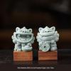 Small Fengshiye Chinese Stone Lion Pair: Desktop Mascot and Creative Tea Pet Ornament for Bonsai and Fish Tank Décor