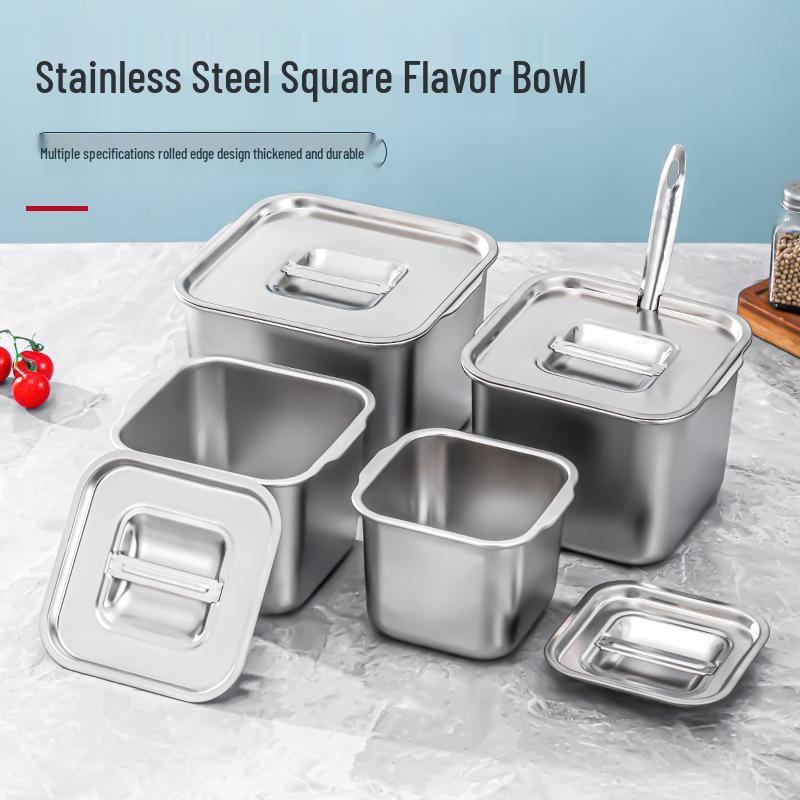 304 Stainless Steel Square Jam Bowl with Lid - Commercial Kitchen Seasoning and Sauce Container.