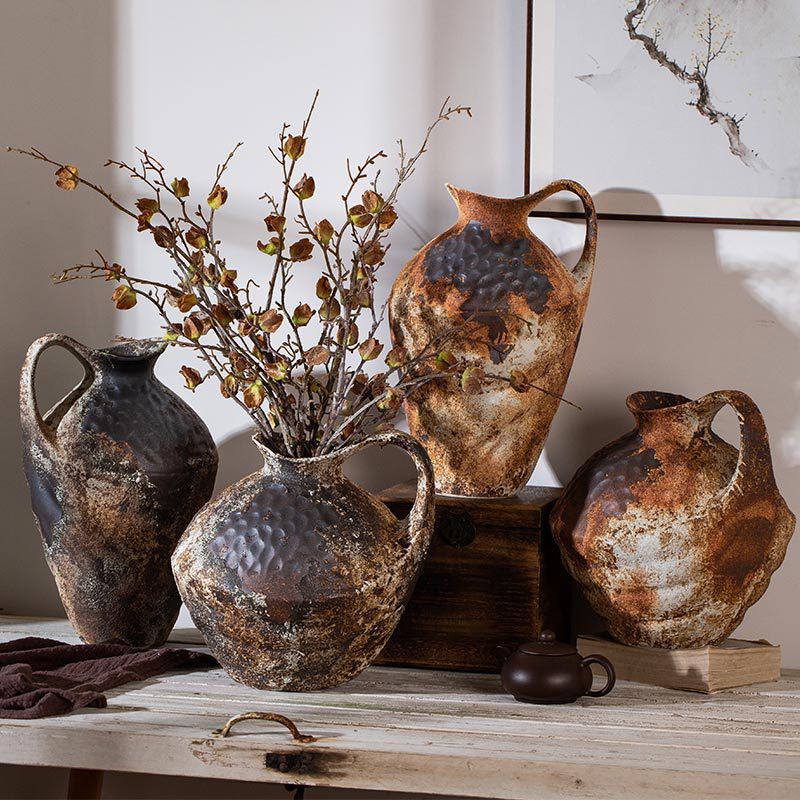 Retro Zen Coarse Pottery Vase: Living Room Tabletop or Foyer Flower Decoration