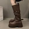 Designer Women Knee High Chelsea Boots Chunky Platform Goth Fad Heeled Shoes Winter New Casual Woman Mid Heels Long Botas