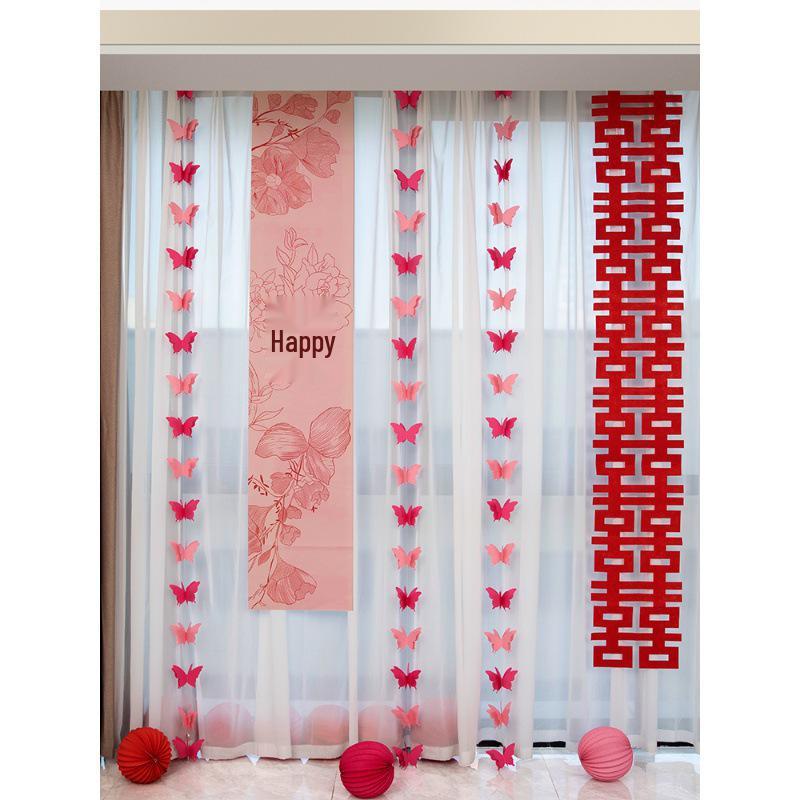 Butterfly Wedding Decoration Set: Pull-Flower Banners & Double Happiness Curtains for Bedroom & Living Room