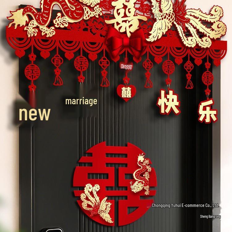 Wedding Room Decoration - Bride & Groom Bedroom Double Happiness Door Sticker Set