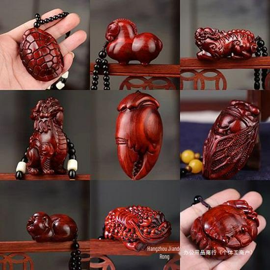 Red Sandalwood Qilin Pixiu Handheld Pendant Ornament
