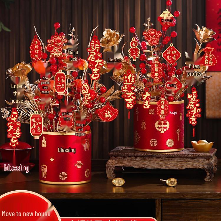 Housewarming Fortune Fruit Bucket Ornament Set - New Home Ceremony Essentials Complete