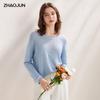 Zhao Jun Women's Fine Spun Crew Neck Contrast Stitch Knit Sweater