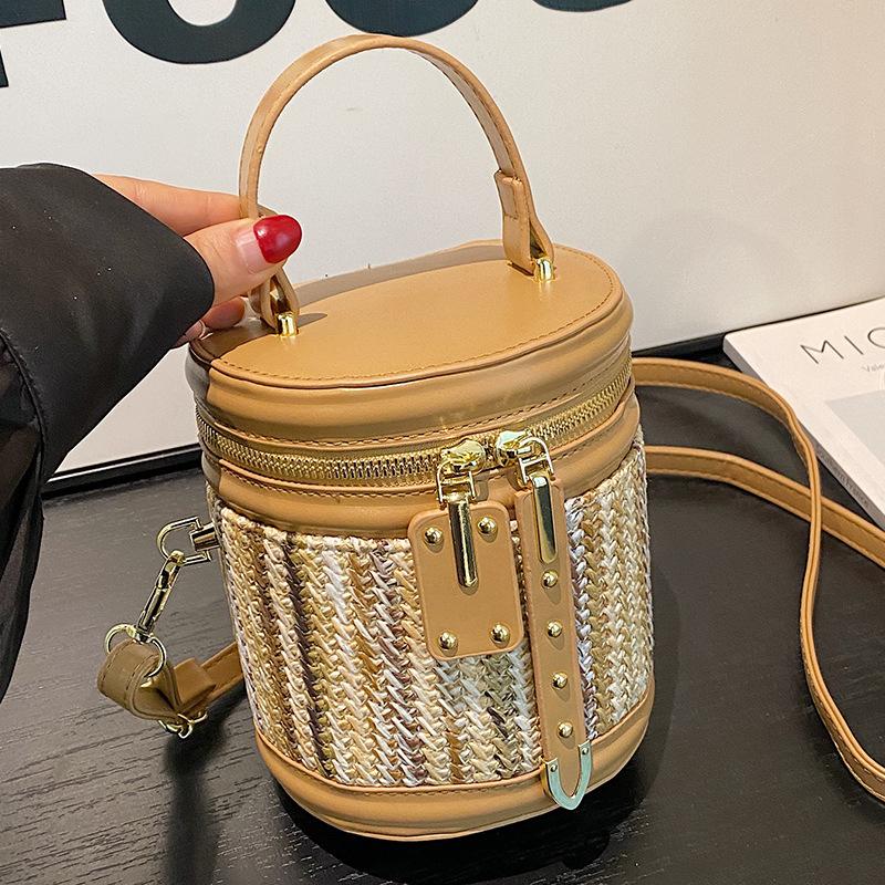 2025 summer new bucket casual women's fashion woven bag bag women's bag woven temperament messenger bag