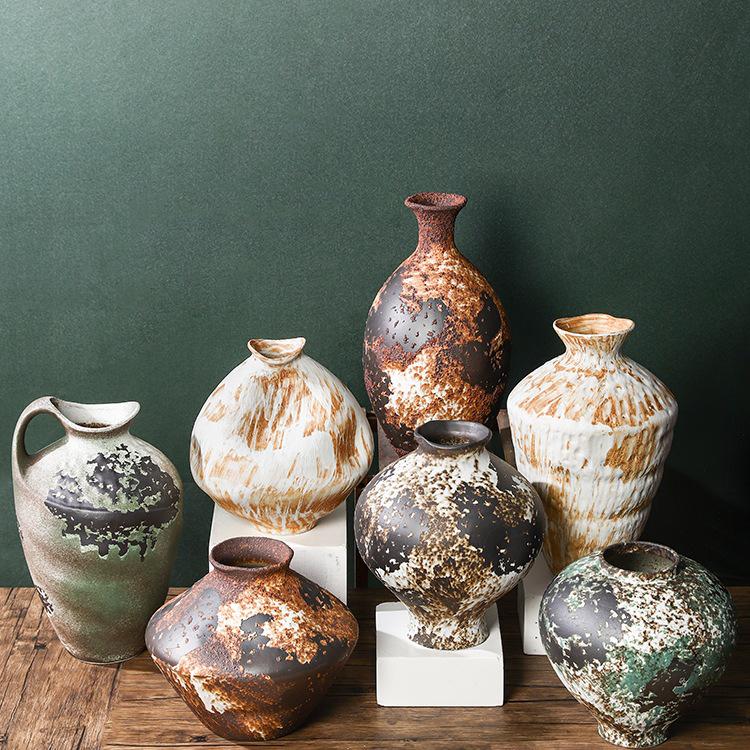 Wabi-Sabi Zen Style Mottled Retro Ceramic Vase - Mid-Century Nostalgic Pottery Jar