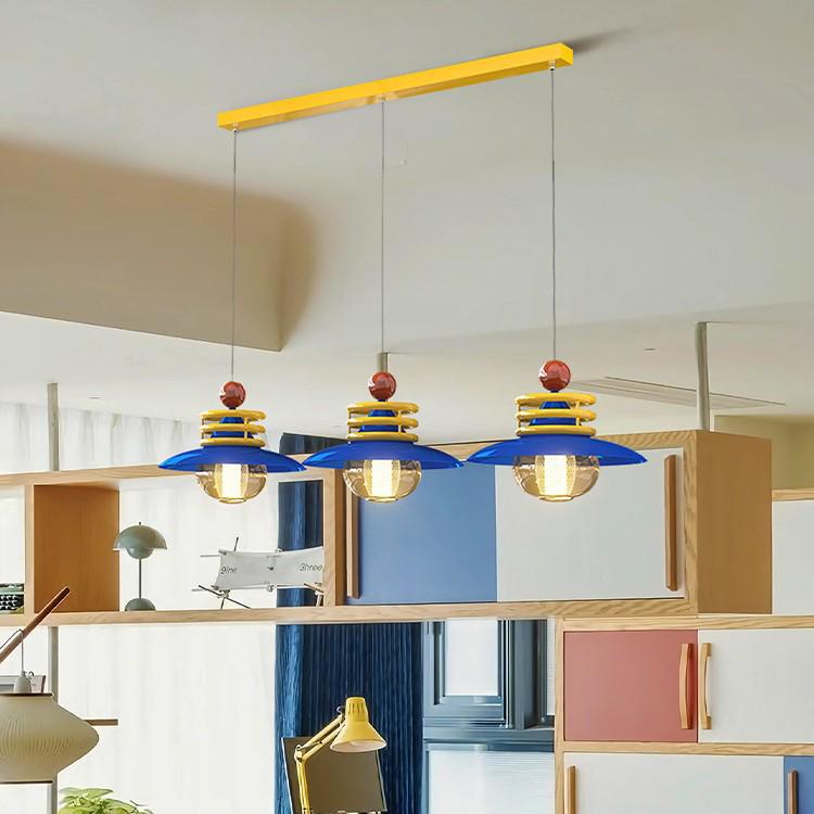Dopamine Dining Table Set with Swing Arm Pendant Light and Eye-Protecting Ceiling Light for Kids