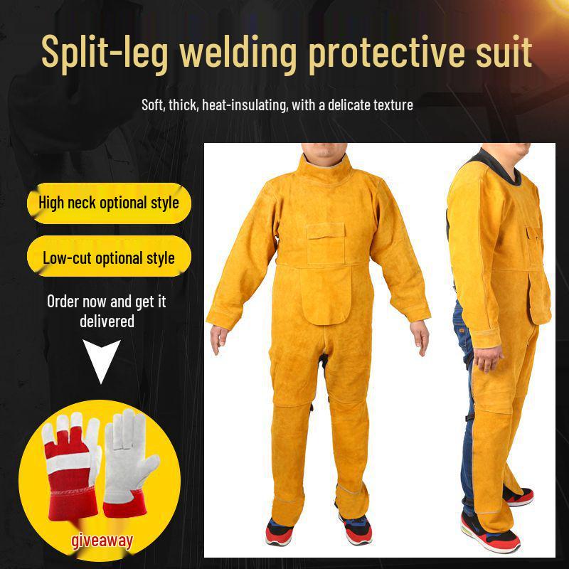 Fireproof Pure Cowhide Welding Apron - Heat-Resistant, Wear-Resistant Protective Suit with Scald Protection