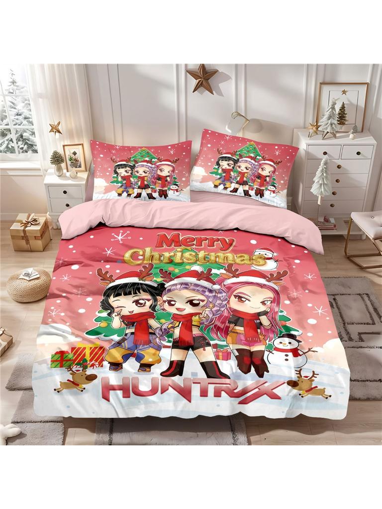 3pcs K-Pop Demon Hunters Merry Christmas Print Coreless Quilt Set Bedrooms Dormitory Bedding Set Soft Machine Washable