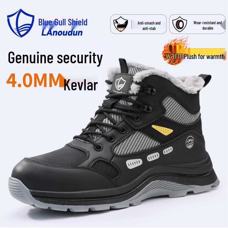 Men's Winter Safety Work Shoes - Blue Gull Shield, Anti-Smash, Anti-Puncture, Wear-Resistant, Plus Velvet Warm.