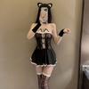 Sexy Lingerie Women Hollow Out Uniform Perspective Temptation Set Cospaly Lovely Cat Jumpsuit Set Seductive Erotic Lingerie