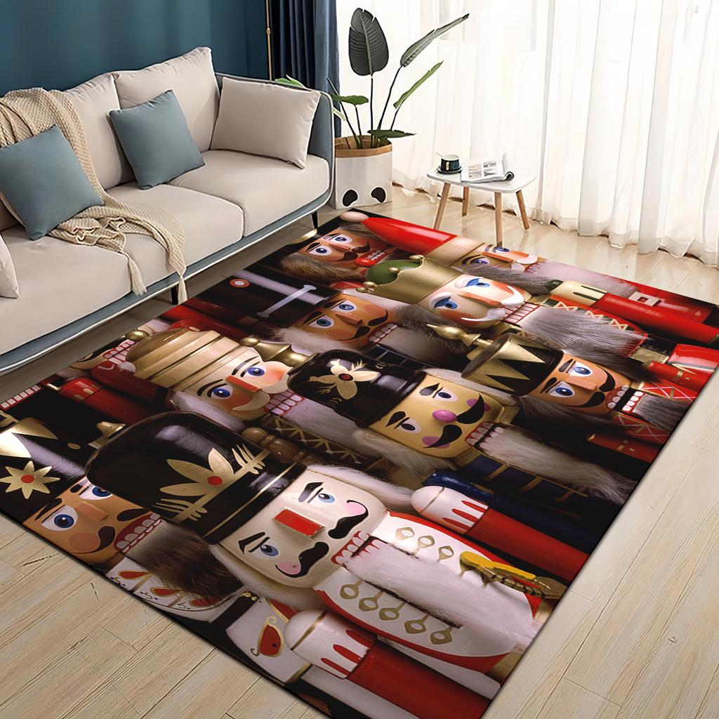Merry Christmas Cartoon The Nutcracker Doll Festival Gift Carpet Rug for Living Room Bedroom Home Sofa Decoration,Non-slip Mat