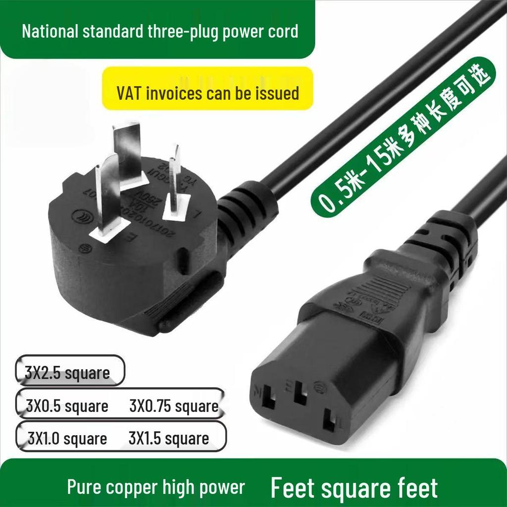 National Standard Pure Copper 3-Hole Power Cord with Plug for High-Power Devices (0.75, 1.0, 1.5 sqmm)