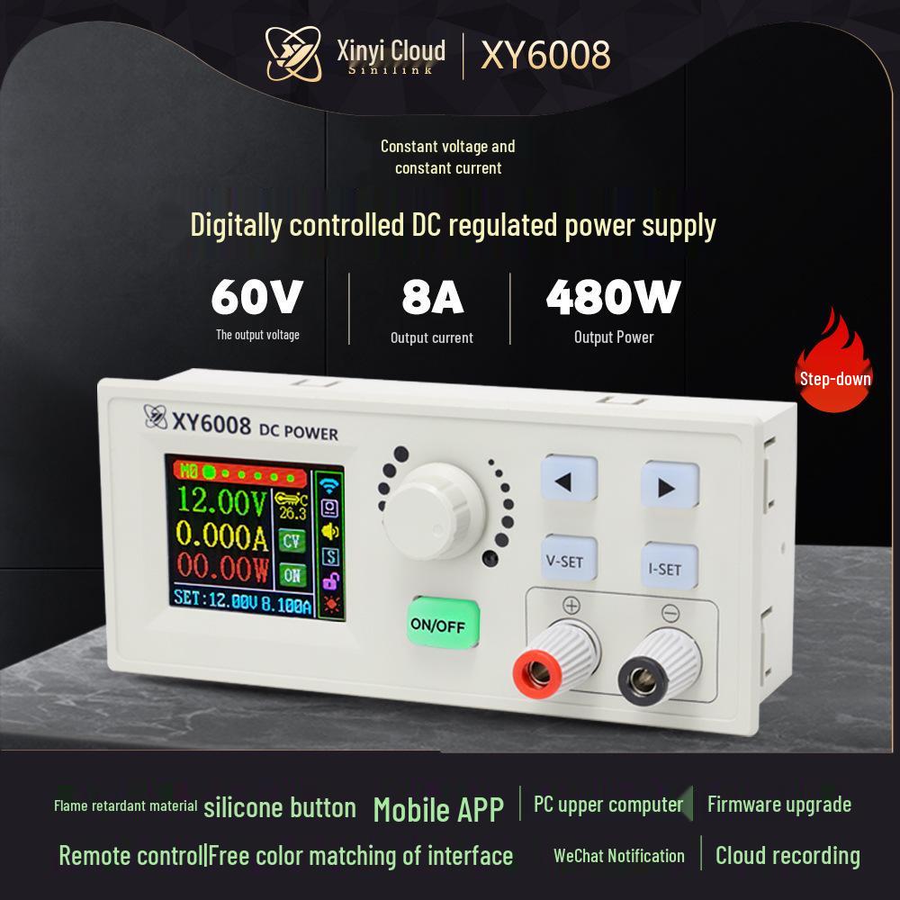 Xinyi XY6008 CNC Adjustable 60V 8A DC Power Supply Module: Regulated Voltage & Current Control, 480W Step-Down Functionality.