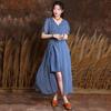 Johnature Summer Women Vintage Polka Dots Dress Fashion Splicing Cotton Short Sleeves V-Neck Casual Dress
