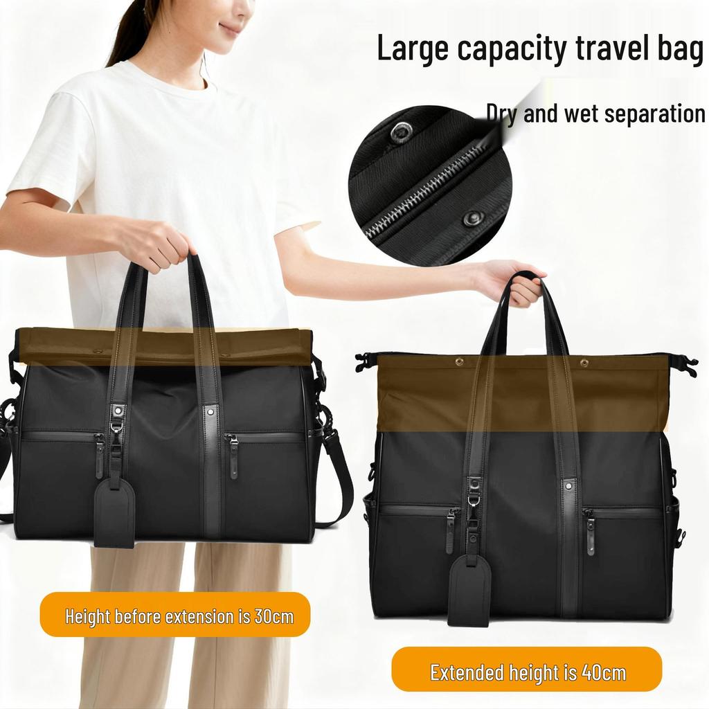 Large Capacity Men's Oxford Cloth Travel Bag: Expandable Shoulder Bag with Wet/Dry Separation for Business Trips and Gym.