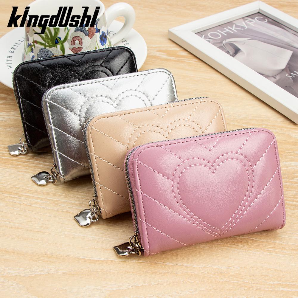New Embroidered Heart Accordion Card Holder Coin Purse with Multi-Card Slots and Large Capacity Zipper.