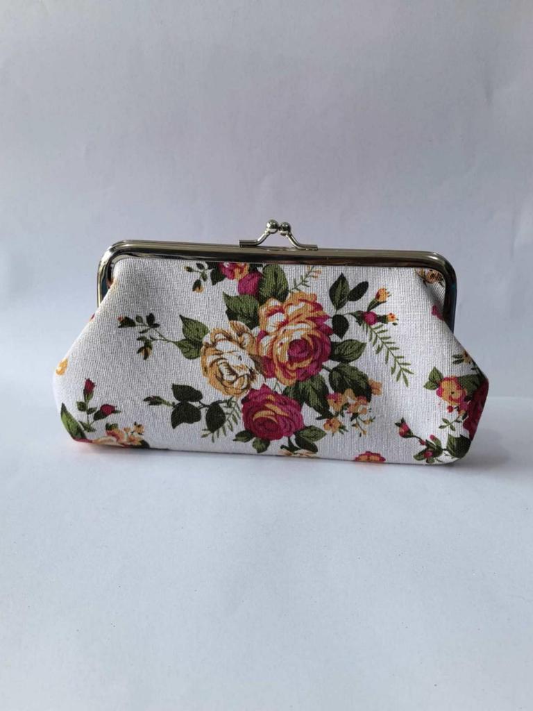 European Retro Rose Print Ladies' Fabric Coin Purse & Clutch Bag