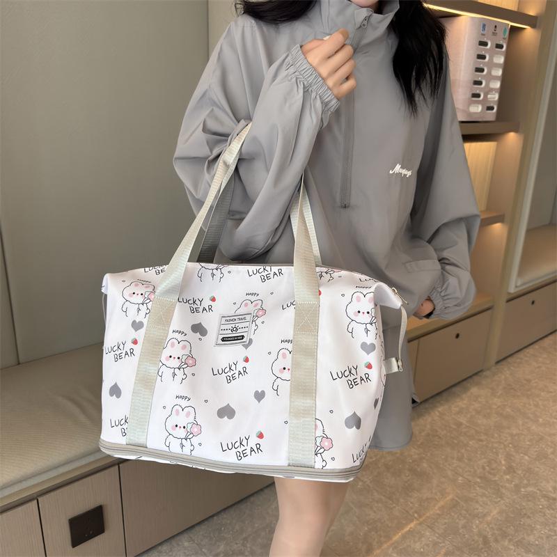 Expandable Cartoon Print Travel Bag: Large Capacity for Pregnant Women, Wet/Dry Separation, Ideal for Gym and Handheld Use